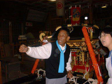 | 今年も祭りは、大成功。 「やれしんどかっつた。」 ダンジリ世話人の代表(テルさん)です。 |