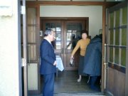 玄関で、牧師が礼拝に出席されたみなさんを見送ります。来週もぜひおいでください。それまで、神様のお守りとお導きがありますように。
