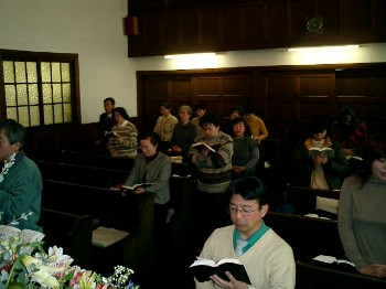 礼拝堂の後ろの席に副牧師がおります。あなたを席に案内します。近くの席の会員が、あなたに声をかけて歓迎いたします。 礼拝が始まるまで、週報に照らして、聖書や讃美歌のページを直ぐに開けるように、準備してください。 |