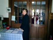 玄関を入ると受付があります。当番の会員が、あなたを出迎えます。 礼拝のプログラムが記載された「週報」が渡されます。聖書や讃美歌などが準備されています。「はじめてです」とお話くださると、必要なものを準備します。 |