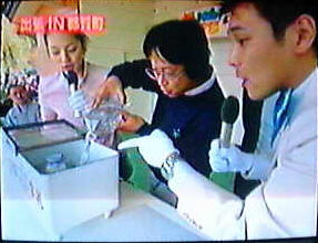 中島先生は 牛乳ビンの方に興味がありそうで